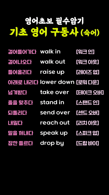 영어초보 필수암기 기초 영어 구동사 (숙어)