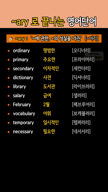 📌 ~ary : ‘~에 관한, ~의 성질을 가진’ [~어리]