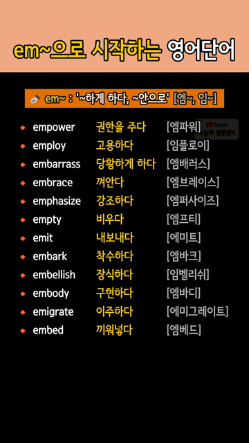 📌 em~ : ‘~하게 하다, ~안으로’ [엠~, 임~]