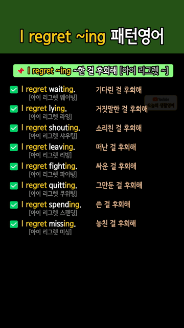 📌 I regret ~ing = ~한 걸 후회해