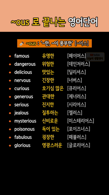 📌 ~ous : ‘~한, ~이 풍부한’ [~어스]