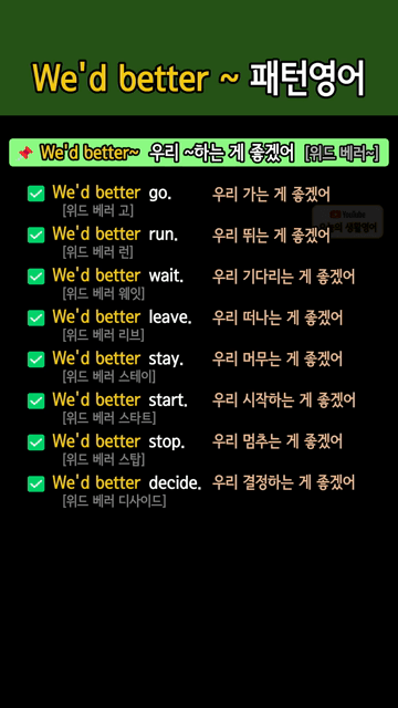 📌 We’d better ~ = 우리 ~하는 게 좋겠어