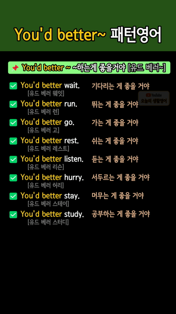 📌 You’d better ~ = ~하는 게 좋을 거야